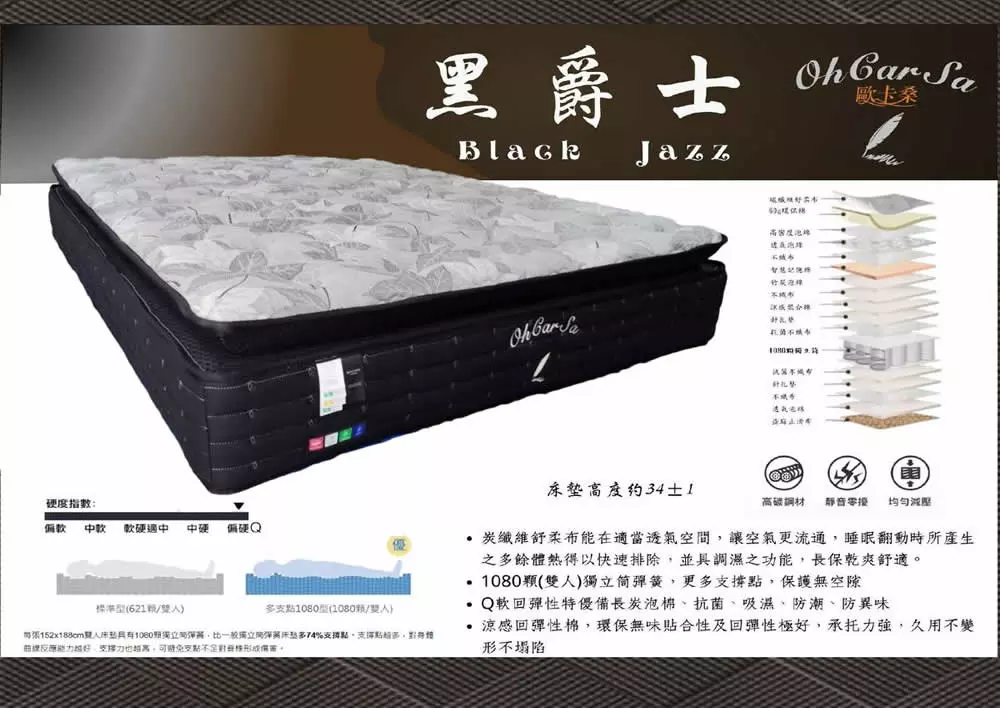 床墊產品 > 高透氣碳纖維 高彈力1080硬式獨立筒