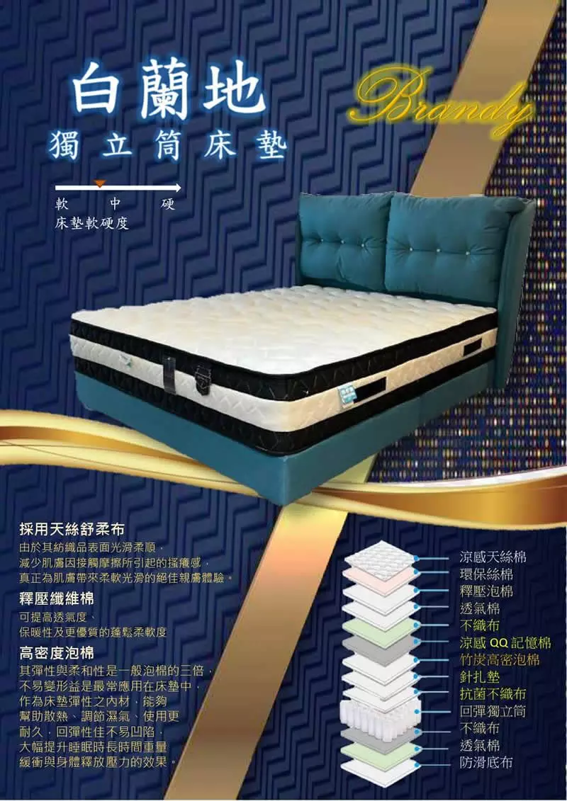 獨立筒床墊 銀離子竹炭床墊 兩面雙用床墊 涼感布床墊 乳膠床墊 急凍紗床墊 三線飯店床墊 手工彈簧床墊 床墊客製化訂做 旅館防火用床墊 彈簧床墊 硬式獨立筒 五段式調整型床墊 中鋼高碳錳鋼床墊 矽膠床墊 水冷膠床墊 天絲表布床墊